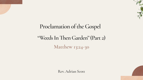 - “Weeds in the Garden” Part 2K. Adrian ScottJune 29, 2025Matthew 13. 24-30“Weeds in the Garden” (Part 2)K. Adrian ScottJune 29, 2025Review and Context.“He put another parable before them, saying, the kingdom of heaven may be compared to a man who sowed good seed in his field.”Since a kingdom must have a king, both phrases then refer to the all-encompassing universal authority of Jesus Christ as the High King of Heaven and the eternal Son of God. The kingdom of heaven does not represent a physical presence here on the earth but refers to God’s reign as Father, Son and Holy Ghost in the soul, the spiritual heart or conscience of everyone born in this physical world. The kingdom is a “spiritual” economy as opposed to a physical or earthly economy.According to John 5.17, the text says this, But Jesus answered them, “My Father is working until now, and I am working.”It is clear to me and others that Jesus is the person described as the “Sower” and thus He is referring to Himself as the “Lord off the Harvest” (Matt. 9.38). While on earth, clearly Jesus is “a man who sowed.” We now see the Sower has good intentions for the field as he plants or sows “good” seed and he plants the good seed in his field. The field belongs to the Sower, so there is ownership!“The earth is the Lord’s, and everything in it, the world, and all who live in it” (Psalm 24.1). The field belongs to the Sower because he paid for it – “He is the propitiation (satisfying our sin debt with the Father) for our sins, and not for ours only but also for the sins of the whole world” (1 John 2.2).Were there times the Sower walked the field and envisioned only what he could see and what he wanted for the field. He had grand ideas and a plan for his field. In my mind’s eye, the Sower had walked every inch of his property, and he knew it all too well. He wasn’t surprised with its odd shapes, the crooked edges, the lumpy sections and the damp spots but he still bought it. This is the Sower’s field, and he loved it.V. 25; “but while his men were sleeping, his enemy came and sowed weeds among the wheat and went away.”Most likely, they were sleeping at home after their work for the day was done.Early on we get an indication that whatever was done by the enemy; whatever evil he concocted; whatever wickedness he spread onto the field among the “good” seed, shared the same soil, benefitted from the same sun and drank the same water as the “good” seed, and like the “good” seed, it grew also!Do you see the goodness of God; the patience of God, that while even doing wrong and using the resources and energy God provided because of God’s common grace, God did not withhold the rich minerals from the soil, refuse to share His rain, nor stop His sun from shining! Even the evil in the world benefits from God’s grace even though he is “His enemy.” Who else would exhibit such long patience and wide mercy with “His enemy” but God? Who else has such holy virtue, such divine kindness, and gracious generosity toward even “His enemy” but the Lord? Jesus said in His Sermon on the Mount we, as His disciples, should “bless those who curse you and pray for those who abuse you” (Luke 6. 28). “His enemy” waited until nighttime, when the field workers were tired and asleep to do their work! This is an attempt to undue the good work that the Sower had already done. We also know the work the enemy did while the field workers slept was dishonorable and destructive. And when they were finished with their evil work, they “went away.” The enemy left without detection or notice.V.26: “So when the plants came up and bore grain, then the weeds appeared also. 27And the servants of the master of the house came and said to him, Master, did you not sow good seed in your field? How then does it have weeds?”Here is the tendency of the enemy to hide his wicked work even while good work is being done. One works planting good seeds through righteous works while at the very same time, the wicked one is sowing weeds, or what the KJV translates “tares” while the strict Greek translation more accurately translates ‘darnel’ or “Lolium temulentum” were planted, actually ‘poisonous weeds’ which according to the NET Bible “has an uncanny resemblance to wheat until the ears of grain appear.” This weed is so dangerous that if eaten, the NET Bible says, it will make the person who eats it experience a feeling of drunkenness and can even cause death.Here is a reminder; a warning to the church of the living God that “Not everyone who says to me, ‘Lord, Lord’ will enter the kingdom of heaven, but the one who does the will of my Father in heaven” (Matthew 7.21).In Satan, the enemy planting dangerous weeds in the same field at the same time as the Sower, Jesus Christ, it tells us something important: Satan is trying to claim his what truly belongs to God!It is important for us to remember there is the ‘visible’ church and the true and ‘invisible’ church. Belonging to the kingdom of God is the result of a genuine, credible, spiritual experience with the Lord; and that experience I am referring to is having been born again by the Holy Spirit. However, to be a member of the ‘visible’ church does not necessarily mean a person has had a ‘born again’ experience with God. Because you attend worship or contribute to the church, volunteer for projects, drive a bus, cut the grass, or do many other things and it will not qualify you to be a part of the Kingdom of God, nor does it mean we are Christians. Especially being a pastor’s child, I was in church more than most, but I was not a Christian until I became born from above! “Unless you are born of water and the Spirit, he cannot enter the kingdom of God.” Let me make it as clear as I can; everyone must be born again if they want to be a part of the Kingdom of Heaven!Now, how does a person know they are r