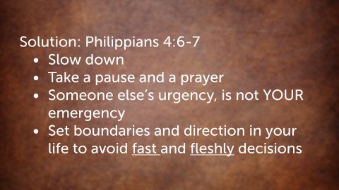 Matthew 7:24–29 NKJV 24 “Therefore whoever hears these sayings of Mine, and does them, I will liken him to a wise man who built his house on the rock: 25 and the rain descended, the floods came, and the winds blew and beat on that house; and it did not fall, for it was founded on the rock. 26 “But everyone who hears these sayings of Mine, and does not do them, will be like a foolish man who built his house on the sand: 27 and the rain descended, the floods came, and the winds blew and beat on that house; and it fell. And great was its fall.” 28 And so it was, when Jesus had ended these sayings, that the people were astonished at His teaching, 29 for He taught them as one having authority, and not as the scribes.Big Idea: If we keep Christs way as our anchorIntroduction:Every year me make resolutions without results. How can we truly follow a path that brings us lasting results and keeps us in the way of Christ?Foundations MatterI. Whoever Hears…. Whoever DoesBoth of these areas are vital for the Growth of the believer. Our faith is activated in our hearing the word and our faith is applied based on our belief. Exposure to scripture rightly divided is one of the healthiest things we can do for ourselvesRomans 10:17 NKJV 17 So then faith comes by hearing, and hearing by the word of God.Our foundations of faith grow in our lives by consistent exposure to the word of God.Power Principle: Inspiration without application = quiet desperation. The reason some people are starving for change is because they have never been hungry for application.James 1:23–25 NKJV 23 For if anyone is a hearer of the word and not a doer, he is like a man observing his natural face in a mirror; 24 for he observes himself, goes away, and immediately forgets what kind of man he was. 25 But he who looks into the perfect law of liberty and continues in it, and is not a forgetful hearer but a doer of the work, this one will be blessed in what he does.(The Law of Liberty- Knowing you are not bound by works but still walking in holiness. You are no longer bound to sin)II. Why is it so important to build on a solid foundation?Power Principle: Whatever we build on is what we have to live onWhen we build on faulty foundations we will eventually spend the majority of our time fixing cracks and rebuilding damaged parts of our lives.Jesus is encouraging us to use his word as the blueprint for every aspect of our lives.Therefore, we should evaluate and ask ourselves, what in our lives is not build on a biblical foundation? What part of my life have I not surrendered to God?III. Why do we build on unstable foundations?For spiritual and overall success, we must identify the root causes of unstable decisions and overcome them.They allow us to build quickly to get what we want without regard for the future damage.Sand is convenient and requires no prep work. A sandcastle does not need zoning of permits. Instant gratification turns to sadness when the tide comes in.How many times have we let circumstances or even pressure from others make a decision before we consulted God?Philippians 4:6–7 NKJV 6 Be anxious for nothing, but in everything by prayer and supplication, with thanksgiving, let your requests be made known to God; 7 and the peace of God, which surpasses all understanding, will guard your hearts and minds through Christ Jesus.Solution: Philippians 4:6-7Slow downTake a pause and a prayerSomeone else’s urgency, is not YOUR emergencySet boundaries and direction in your life to avoid fast and fleshly decisionsFast and Pray to crucify the flesh and create a heightened awareness to the word and the Holy Spirit for guidance3. It’s the only foundation We’ve seen.Solution:Start from Scratch. Abandon the old way of life and cling totally to Christ.Ephesians 4:17-242 Corinthians 5:172 Corinthians 5:17 NKJV 17 Therefore, if anyone is in Christ, he is a new creation; old things have passed away; behold, all things have become new.Ephesians 4:17–24 NKJV 17 This I say, therefore, and testify in the Lord, that you should no longer walk as the rest of the Gentiles walk, in the futility of their mind, 18 having their understanding darkened, being alienated from the life of God, because of the ignorance that is in them, because of the blindness of their heart; 19 who, being past feeling, have given themselves over to lewdness, to work all uncleanness with greediness. 20 But you have not so learned Christ, 21 if indeed you have heard Him and have been taught by Him, as the truth is in Jesus: 22 that you put off, concerning your former conduct, the old man which grows corrupt according to the deceitful lusts, 23 and be renewed in the spirit of your mind, 24 and that you put on the new man which was created according to God, in true righteousness and holiness. Matthew 7:24–29NKJV