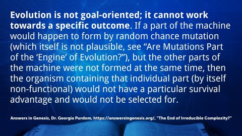 The Moral Argument doesn’t quite get us to the God of the Bible, but it does get us to recognize that some sort of conscious being is required to explain the existence of morality.Summary of the Moral Argument:Morality is rooted in universal absolute truths of right and wrong that we call Natural Law.Nothing in the natural realm can adequately explain Natural Law.There must be a Supernatural Law-Giver.The Moral Argument in ScriptureRomans 2:14–16 ESV 14 For when Gentiles, who do not have the law, by nature do what the law requires, they are a law to themselves, even though they do not have the law. 15 They show that the work of the law is written on their hearts, while their conscience also bears witness, and their conflicting thoughts accuse or even excuse them 16 on that day when, according to my gospel, God judges the secrets of men by Christ Jesus.The Teleological ArgumentFrom the Greek word telos, meaning goal, end, or purpose.First articulated by Thomas Aquinas in the 1200’s in his classic work Summa Theologica:“The fifth way is taken from the governance of the world. We see that things which lack intelligence, such as natural bodies, act for an end, and this is evident from their acting always, or nearly always, in the same way, so as to obtain the best result. Hence it is plain that not fortuitously, but designedly, do they achieve their end. Now whatever lacks intelligence cannot move towards an end, unless it be directed by some being endowed with knowledge and intelligence; as the arrow is shot to its mark by the archer. Therefore some intelligent beings exist by whom all natural things are directed to their end; and this being we call God.”Intelligent DesignWhen we find a watch in the woods, we do not assume that the watch created itself. Its complexity and the information contained in it all demonstrate that it was designed by an intelligent being to serve a purpose, namely, to tell time.Similarly, when we look at DNA, we see the same thing—information encoded for a purpose. Since cells and microorganisms and chemicals do not themselves think or plan—they are not ‘intelligent’—this information had to be encoded by a designer.Irreducible ComplexityMolecular machines are considered to be irreducibly complex. An irreducibly complex machine is made of a number of essential parts, and all these parts must be present for it to function properly. If even one of these parts is missing the machine is non-functional. Evolution, which supposedly works in a stepwise fashion over long periods of time, can’t form these complex machines. Evolution is not goal-oriented; it cannot work towards a specific outcome. If a part of the machine would happen to form by random chance mutation (which itself is not plausible, see “Are Mutations Part of the ‘Engine’ of Evolution?”), but the other parts of the machine were not formed at the same time, then the organism containing that individual part (by itself non-functional) would not have a particular survival advantage and would not be selected for. Since the part offers no advantage to the organism, it would likely be lost from the population, and evolution would be back to square one in forming the parts for the machine. There is essentially no way to collect the parts over time because the individual parts do not have a function (without the other parts) and do not give the organism a survival advantage. Remember, all the necessary parts must be present for the machine to be functional and convey a survival advantage that could be selected for.Answers in Genesis, Dr. Georgia Purdom, https://answersingenesis.org/, “The End of Irreducible Complexity?”God’s purpose (telos) revealed in ScriptureIsaiah 43:7 ESV 7 everyone who is called by my name, whom I created for my glory, whom I formed and made.”1 Corinthians 15:24 ESV 24 Then comes the end (telos), when he delivers the kingdom to God the Father after destroying every rule and every authority and power.1 Corinthians 15:28 ESV 28 When all things are subjected to him, then the Son himself will also be subjected to him who put all things in subjection under him, that God may be all in all.Revelation 22:13 ESV 13 I am the Alpha and the Omega, the first and the last, the beginning and the end (telos).”Nicene and Post-Nicene Fathers 1.1: The Confessions and Letters of St. Augustin with a Sketch of His Life and Work Chapter IGreat art Thou, O Lord, and greatly to be praised; great is Thy power, and of Thy wisdom there is no end. And man, being a part of Thy creation, desires to praise Thee,—man, who bears about with him his mortality, the witness of his sin, even the witness that Thou “resistest the proproud,”—yet man, this part of Thy creation, desires to praise Thee.
