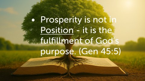 Genesis 37:23–24 NKJV 23 So it came to pass, when Joseph had come to his brothers, that they stripped Joseph of his tunic, the tunic of many colors that was on him. 24 Then they took him and cast him into a pit. And the pit was empty; there was no water in it.Joseph’s brothers sold him into slavery because of their hatred of him.I - Purpose Endures InjusticeGod’s purpose is at work, even when we are wronged (Gen 39:2)Purpose Survives RejectionBetrayed by his brothers, stripped of his robe, sold into slavery.No position, no power — but God’s purpose was still active.The pit wasn’t the end — it was the beginning.Key Point: Purpose isn’t canceled by rejection or injustice. Prosperity Result: God was already positioning Joseph for influence and used this situation to form Joseph.God did not cause Joseph’s brothers to hate him. But even in their hatred, God brought a Caravan to lead Joseph to his calling.***When Joseph got to Potiphar’s house, he was purchased with no rights and no value.Sometimes we feel like we are in this place.Genesis 39:1–2 NKJV 1 Now Joseph had been taken down to Egypt. And Potiphar, an officer of Pharaoh, captain of the guard, an Egyptian, bought him from the Ishmaelites who had taken him down there. 2 The Lord was with Joseph, and he was a successful man; and he was in the house of his master the Egyptian.II - Purpose Thrives in ServiceJoseph served God and served where he was positioned (Col 2:23)Colossians 3:23 NKJV 23 And whatever you do, do it heartily, as to the Lord and not to men,Purpose Thrives in ServiceJoseph served faithfully in a foreign land.He didn’t wait for promotion to act with excellence.God’s favor rested on him because of his integrity and diligence.Key Point: Purpose is revealed in how you serve, not where you serve. Prosperity Result: Joseph was entrusted with everything in Potiphar’s house.Joseph was faithful with a little and he was entrusted with Potiphar’s whole houseJOSEPH WAS SUCCESSFUL BUT WAS STILL A SLAVE AND EVERYTHING HE PROSPERED IN, WAS FOR THE BENEFIT OF OTHERS.Where Joseph’s brothers sold him into slavery, Potiphar’s wife tried to seduce him and then accused him to her husband which caused him to be thrown in the King’s prison.By now time has already gone on. He had shown himself faithful, right?Now he is in prison again. But God’s purpose was still at work in Joseph.Genesis 39:21–22 NKJV 21 But the Lord was with Joseph and showed him mercy, and He gave him favor in the sight of the keeper of the prison. 22 And the keeper of the prison committed to Joseph’s hand all the prisoners who were in the prison; whatever they did there, it was his doing.God was WITH Joseph. He was not alone.III - Purpose Requires PerseveranceJoseph continued to honor God in the midst of his mistreatment and unfair circumstances. (Matt 5:44; Rom 12:14; 1 Peter 3:9)Romans 12:14 NKJV 14 Bless those who persecute you; bless and do not curse.**Are you going through situations that seem unfair? Look for the purpose of God being fulfilled in your life.Purpose Endures InjusticeFalsely accused, imprisoned, forgotten.Yet Joseph kept interpreting dreams, encouraging others, and trusting God.His gift made room for him — even behind bars.Key Point: Purpose doesn’t depend on fair treatment — it depends on faithful stewardship. Prosperity Result: Joseph gained influence even in confinement***In the midst of all of this, God blessed Joseph to be a blessing, even in prison.He interprets dreams for the baker and the cub bearer. He asks the cup bearer to remember him (but he forgets)Eventually the Pharaoh has a dream and God uses Joseph to reveal it. There would be 7 years of plenty followed by 7 years of famine.Years have gone by now. He was 17 with his father. He was 30 by the time he goes before PharaohIV - Purpose is about PerspectiveAligning yourself with God’s purpose for you allows you to be a part of His amazing work.Joseph interprets Pharaoh’s dream and is promoted. His promotion reveals his faithfulness and ability to glorify God with the promotion.He uses his position to save nations, not just himself.His prosperity was never about comfort — it was about calling.Key Point: Purpose is fulfilled when your prosperity blesses others. Prosperity Result: Joseph becomes a channel of provision and wisdom.If you chase promotion, your focus is wrong. When you steward your purpose and keep your eyes on God, you are prosperous no matter the outcome.Joseph showed that he could honor God with nothing or with riches.LOOK AT JOSEPH’S PERSPECTIVE:Genesis 45:5 NKJV 5 But now, do not therefore be grieved or angry with yourselves because you sold me here; for God sent me before you to preserve life.He saw God in the middle of injustice, slavery, servitude, lies, and forgetfulness. This was his conclusion from all the experiences he went through.Look at what Paul says about honoring God...Philippians 4:11–13 NIV 11 I am not saying this because I am in need, for I have learned to be content whatever the circumstances. 12 I know what it is to be in need, and I know what it is to have plenty. I have learned the secret of being content in any and every situation, whether well fed or hungry, whether living in plenty or in want. 13 I can do all this through him who gives me strength.Can you honor God when life is unfair or unjust?Can you serve God and others faithfully?Can you be a good steward of what God has entrusted to you?Luke 16:10–13 NIV 10 “Whoever can be trusted with very little can also be trusted with much, and whoever is dishonest with very little will also be dishonest with much. 11 So if you have not been trustworthy in handling worldly wealth, who will trust you with true riches? 12 And if you have not been trustworthy with someone else’s property, who will give you property of your own? 13 “No one can serve two masters. Either you will hate the one and love the other, or you will be devoted to the one and despi