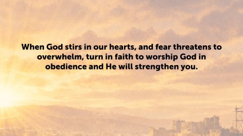 Ezra 3:1–7 ESV 1 When the seventh month came, and the children of Israel were in the towns, the people gathered as one man to Jerusalem. 2 Then arose Jeshua the son of Jozadak, with his fellow priests, and Zerubbabel the son of Shealtiel with his kinsmen, and they built the altar of the God of Israel, to offer burnt offerings on it, as it is written in the Law of Moses the man of God. 3 They set the altar in its place, for fear was on them because of the peoples of the lands, and they offered burnt offerings on it to the Lord, burnt offerings morning and evening. 4 And they kept the Feast of Booths, as it is written, and offered the daily burnt offerings by number according to the rule, as each day required, 5 and after that the regular burnt offerings, the offerings at the new moon and at all the appointed feasts of the Lord, and the offerings of everyone who made a freewill offering to the Lord. 6 From the first day of the seventh month they began to offer burnt offerings to the Lord. But the foundation of the temple of the Lord was not yet laid. 7 So they gave money to the masons and the carpenters, and food, drink, and oil to the Sidonians and the Tyrians to bring cedar trees from Lebanon to the sea, to Joppa, according to the grant that they had from Cyrus king of Persia.Unified by the plans of GodEzra 3:1 ESV 1 When the seventh month came, and the children of Israel were in the towns, the people gathered as one man to Jerusalem.Instructed by the Word of GodEzra 3:2 ESV 2 Then arose Jeshua the son of Jozadak, with his fellow priests, and Zerubbabel the son of Shealtiel with his kinsmen, and they built the altar of the God of Israel, to offer burnt offerings on it, as it is written in the Law of Moses the man of God.Who is Jeshua?Descendant of AaronThe religious leaderWho is Zerubbabel?Descendant of DavidThe civil or political leaderHaggai 1:1 ESV 1 In the second year of Darius the king, in the sixth month, on the first day of the month, the word of the Lord came by the hand of Haggai the prophet to Zerubbabel the son of Shealtiel, governor of Judah, and to Joshua the son of Jehozadak, the high priest:Haggai 1:12 ESV 12 Then Zerubbabel the son of Shealtiel, and Joshua the son of Jehozadak, the high priest, with all the remnant of the people, obeyed the voice of the Lord their God, and the words of Haggai the prophet, as the Lord their God had sent him. And the people feared the Lord.They worshiped the Lord in the face of fear.Ezra 3:3–6 ESV 3 They set the altar in its place, for fear was on them because of the peoples of the lands, and they offered burnt offerings on it to the Lord, burnt offerings morning and evening. 4 And they kept the Feast of Booths, as it is written, and offered the daily burnt offerings by number according to the rule, as each day required, 5 and after that the regular burnt offerings, the offerings at the new moon and at all the appointed feasts of the Lord, and the offerings of everyone who made a freewill offering to the Lord. 6 From the first day of the seventh month they began to offer burnt offerings to the Lord. But the foundation of the temple of the Lord was not yet laid.What the Spirit had stirred they began to doEzra 3:7 ESV 7 So they gave money to the masons and the carpenters, and food, drink, and oil to the Sidonians and the Tyrians to bring cedar trees from Lebanon to the sea, to Joppa, according to the grant that they had from Cyrus king of Persia.God is still working the same way in His church.We are to be unifiedPhilippians 2:1–2 ESV 1 So if there is any encouragement in Christ, any comfort from love, any participation in the Spirit, any affection and sympathy, 2 complete my joy by being of the same mind, having the same love, being in full accord and of one mind.Be instructed by the word of GodJames 1:22 ESV 22 But be doers of the word, and not hearers only, deceiving yourselves.Faith in action overcomes fear!Colossians 3:16 ESV 16 Let the word of Christ dwell in you richly, teaching and admonishing one another in all wisdom, singing psalms and hymns and spiritual songs, with thankfulness in your hearts to God.2 Timothy 1:6–7 ESV 6 For this reason I remind you to fan into flame the gift of God, which is in you through the laying on of my hands, 7 for God gave us a spirit not of fear but of power and love and self-control.1 John 4:18 ESV 18 There is no fear in love, but perfect love casts out fear. For fear has to do with punishment, and whoever fears has not been perfected in love.John 14:27 ESV 27 Peace I leave with you; my peace I give to you. Not as the world gives do I give to you. Let not your hearts be troubled, neither let them be afraid.Mark 4:39–40 ESV 39 And he awoke and rebuked the wind and said to the sea, “Peace! Be still!” And the wind ceased, and there was a great calm. 40 He said to them, “Why are you so afraid? Have you still no faith?”Philippians 4:6–7 ESV 6 do not be anxious about anything, but in everything by prayer and supplication with thanksgiving let your requests be made known to God. 7 And the peace of God, which surpasses all understanding, will guard your hearts and your minds in Christ Jesus.We are to act on the TruthMatthew 7:24–27 ESV 24 “Everyone then who hears these words of mine and does them will be like a wise man who built his house on the rock. 25 And the rain fell, and the floods came, and the winds blew and beat on that house, but it did not fall, because it had been founded on the rock. 26 And everyone who hears these words of mine and does not do them will be like a foolish man who built his house on the sand. 27 And the rain fell, and the floods came, and the winds blew and beat against that house, and it fell, and great was the fall of it.”When God stirs in our hearts, and fear threatens to overwhelm, turn in faith to worship God in obedience and He will strengthen you. Ezra 3:1–7ESV