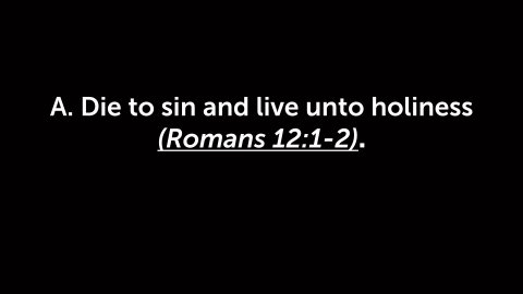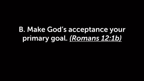 Romans 12:1–5 NLT 1 And so, dear brothers and sisters, I plead with you to give your bodies to God because of all he has done for you. Let them be a living and holy sacrifice—the kind he will find acceptable. This is truly the way to worship him. 2 Don’t copy the behavior and customs of this world, but let God transform you into a new person by changing the way you think. Then you will learn to know God’s will for you, which is good and pleasing and perfect. 3 Because of the privilege and authority God has given me, I give each of you this warning: Don’t think you are better than you really are. Be honest in your evaluation of yourselves, measuring yourselves by the faith God has given us. 4 Just as our bodies have many parts and each part has a special function, 5 so it is with Christ’s body. We are many parts of one body, and we all belong to each other.INTRODUCTION:I- THE PRINCIPLE (Romans 12:1 A)Romans 12:1 NLT 1 And so, dear brothers and sisters, I plead with you to give your bodies to God because of all he has done for you. Let them be a living and holy sacrifice—the kind he will find acceptable. This is truly the way to worship him.A. What is the command?1. Yield your entire being to Christ(Romans 6:12–16)Romans 6:12–16 NLT 12 Do not let sin control the way you live; do not give in to sinful desires. 13 Do not let any part of your body become an instrument of evil to serve sin. Instead, give yourselves completely to God, for you were dead, but now you have new life. So use your whole body as an instrument to do what is right for the glory of God. 14 Sin is no longer your master, for you no longer live under the requirements of the law. Instead, you live under the freedom of God’s grace. 15 Well then, since God’s grace has set us free from the law, does that mean we can go on sinning? Of course not! 16 Don’t you realize that you become the slave of whatever you choose to obey? You can be a slave to sin, which leads to death, or you can choose to obey God, which leads to righteous living.2. The physical body(Philippians 1:20)Philippians 1:20 NLT 20 For I fully expect and hope that I will never be ashamed, but that I will continue to be bold for Christ, as I have been in the past. And I trust that my life will bring honor to Christ, whether I live or die.(2 Corinthians 5:10)2 Corinthians 5:10 NLT 10 For we must all stand before Christ to be judged. We will each receive whatever we deserve for the good or evil we have done in this earthly body.3. The eternal soul(1 Thessalonians 5:23)1 Thessalonians 5:23 NLT 23 Now may the God of peace make you holy in every way, and may your whole spirit and soul and body be kept blameless until our Lord Jesus Christ comes again.4. The intellectual mind(Mark 12:30)Mark 12:30 NLT 30 And you must love the Lord your God with all your heart, all your soul, all your mind, and all your strength.’B. What is the Motivation?Illustration:During a late evening jog, a man took a shortcut to his house through a large cemetery. In the darkness of the night he did not see a freshly dug grave, and fell into it. For the better part of the next hour he struggled to climb out. He tried every conceivable maneuver but just couldn't escape. Finally, he resigned himself to curling up in the corner and waiting for morning. Within the next thirty minutes another late-night jogger suffered the same fate and fell into the same grave. He tried to quickly climb out but fell down on his first attempt. The first jogger then put his hand on the shoulder of the other man and said, "You can't get out." But he did!("Solitaire," Gene Appel, Seeds Tape Ministry, July 24, 1994)1. God’s mercy and love demonstrated at Calvary.(Romans 5:6–8)Romans 5:6–8 NLT 6 When we were utterly helpless, Christ came at just the right time and died for us sinners. 7 Now, most people would not be willing to die for an upright person, though someone might perhaps be willing to die for a person who is especially good. 8 But God showed his great love for us by sending Christ to die for us while we were still sinners.(Hebrews 4:15–16)Hebrews 4:15–16 NLT 15 This High Priest of ours understands our weaknesses, for he faced all of the same testings we do, yet he did not sin. 16 So let us come boldly to the throne of our gracious God. There we will receive his mercy, and we will find grace to help us when we need it most.II- THE PRACTICE (Romans 12:1-2).Romans 12:1–2 NLT 1 And so, dear brothers and sisters, I plead with you to give your bodies to God because of all he has done for you. Let them be a living and holy sacrifice—the kind he will find acceptable. This is truly the way to worship him. 2 Don’t copy the behavior and customs of this world, but let God transform you into a new person by changing the way you think. Then you will learn to know God’s will for you, which is good and pleasing and perfect.A. Die to sin and live unto holiness (Romans 12:1-2).Romans 12:1–2 NLT 1 And so, dear brothers and sisters, I plead with you to give your bodies to God because of all he has done for you. Let them be a living and holy sacrifice—the kind he will find acceptable. This is truly the way to worship him. 2 Don’t copy the behavior and customs of this world, but let God transform you into a new person by changing the way you think. Then you will learn to know God’s will for you, which is good and pleasing and perfect.1. You will either live to sin and die by it or die to sin and thereby live.(Romans 6:23)Romans 6:23 NLT 23 For the wages of sin is death, but the free gift of God is eternal life through Christ Jesus our Lord.2. Holiness means living a life separated and dedicated to serving Christ.(2 Corinthians 6:17)2 Corinthians 6:17 NLT 17 Therefore, come out from among unbelievers, and separate yourselves from them, says the Lord. Don’t touch their filthy things, and I will welcome you.B. Make God’s acceptance your primary goal. (Romans 12:1b)Romans 12:1 NLT 1 And