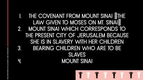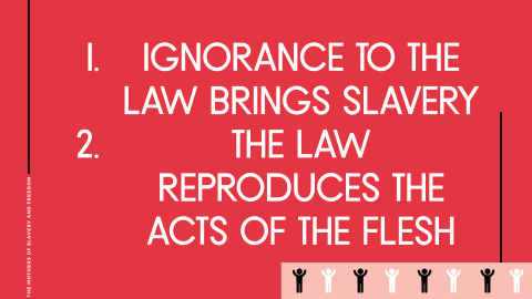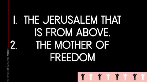 Galatians 4:21–31 NIV - Anglicised Tell me, you who want to be under the law, are you not aware of what the law says? For it is written that Abraham had two sons, one by the slave woman and the other by the free woman. His son by the slave woman was born in the ordinary way; but his son by the free woman was born as the result of a promise. These things may be taken figuratively, for the women represent two covenants. One covenant is from Mount Sinai and bears children who are to be slaves: This is Hagar. Now Hagar stands for Mount Sinai in Arabia and corresponds to the present city of Jerusalem, because she is in slavery with her children. But the Jerusalem that is above is free, and she is our mother. For it is written: “Be glad, O barren woman, who bears no children; break forth and cry aloud, you who have no labour pains; because more are the children of the desolate woman than of her who has a husband.” Now you, brothers, like Isaac, are children of promise. At that time the son born in the ordinary way persecuted the son born by the power of the Spirit. It is the same now. But what does the Scripture say? “Get rid of the slave woman and her son, for the slave woman’s son will never share in the inheritance with the free woman’s son.”Therefore, brothers, we are not children of the slave woman, but of the free woman.1. IGNORANCE TO THE PURPOSE OF THE LAW BRINGS SLAVERYare you not aware of what the law says?Galatians 4:21 NIV - Anglicised Tell me, you who want to be under the law, are you not aware of what the law says?Law was added so that sin would increaseRomans 5:20 NIV - Anglicised The law was added so that the trespass might increase. But where sin increased, grace increased all the more,Through the law we become conscious of sinRomans 3:20 NIV - Anglicised Therefore no-one will be declared righteous in his sight by observing the law; rather, through the law we become conscious of sin.2. ABRAHAM’S TWO SONS REPRESENT THE OFFSPRING OF THE LAW AND FAITH1. Ishmael (Name never mentioned)Child of the flesh (law produces fleshly actions and lifestyle)(Abraham trying to make things happen on his own)Born by the slave woman, Hagar2. IsaacChild of PromiseBorn to be freeBorn of a free womanYou have two sons (laws) working in you at all timesTwo dogs Black and white .... which one will win?3. THE METAPHOR OF THE WOMEN REPRESENTS THE OLD AND NEW COVENANTS(These things may be taken figuratively)Women Represent Two Covenants1. Hagar Represents:1. The Covenant from Mount Sinai (The law given to Moses on Mt. Sinai)(Egyptian Slave and Handmaid of Sarah)The Covenant from Mount Sinai (The law given to Moses on Mt. Sinai)The Covenant from Mount Sinai (The law given to Moses on Mt. Sinai)2. Mount Sinai which corresponds to the present city of Jerusalem because she is in slavery with her children3. Bearing children who are to be slaves4. Mount Sinai2. Sarah Represents:1. The Jerusalem that is from above.2. The mother of freedomSon’s Represent HeritageAs believers, we are to be Children of promise4. THE ETERNAL FATE OF THE SON’SSon of the flesh is a persecutorAlways persecutes the son born by the power of the SpiritKick Out the slave woman and her sonThe slave woman’s son will never share in the inheritance with the free woman’s son5. THE SPIRITUAL SIGNIFICANCE OF THE WOMEN AND THEIR SON’SThe Law Of Moses Is All About SlaveryThe law was born into slavery (The law was added because of sin)Hagar, An Egyptian born into slaveryThe law without the love of God is slavery...Impossible to keep.No way to get aheadIt bears children who are to be slavesThe law always produces imprisonment, bondage and slaveryThe Law Of Love (New Covenant) Is All About FreedomThe Jerusalem that is from above (Heaven)Our Citizenship is in heaven (New Jerusalem)Philippians 3:20 NIV - Anglicised But our citizenship is in heaven. And we eagerly await a Saviour from there, the Lord Jesus Christ,Mount Zion, the new JerusalemHebrews 12:22 NIV - Anglicised But you have come to Mount Zion, to the heavenly Jerusalem, the city of the living God. You have come to thousands upon thousands of angels in joyful assembly,The new Jerusalem, the city of GodRevelation 3:12 NIV - Anglicised Him who overcomes I will make a pillar in the temple of my God. Never again will he leave it. I will write on him the name of my God and the name of the city of my God, the new Jerusalem, which is coming down out of heaven from my God; and I will also write on him my new name.New Jerusalem coming down out of heavenRevelation 21:2 NIV - Anglicised I saw the Holy City, the new Jerusalem, coming down out of heaven from God, prepared as a bride beautifully dressed for her husband.TAKE HOME TRUTHSIgnorance to the law brings slaveryThe law reproduces the acts of the fleshThe women represent birthing the flesh or the Spirit… Slavery or FreedomYou must identify with Isaac (accept your true identity in Christ.)YOUR RESPONSE TO TRUTHWill you accept your true Identity in Christ ... original intentWill you accept that you are God’s offspringWill you receive your genuine innocence in ChristWill you kick out the law … By Force .... yeast—teaching of the lawHow do you kick something out of your mind? REPLACE IT!Seed of the Woman & Satanserpents seed bruise your heal--- Seed of woman will crush your headDividing wall of hostility Made the two one by abolishing the lawYou will never be complete as long as you are having this war with in you... Galatians 4:21–31ESV