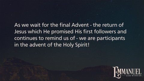 Our life story begins at the moment of physical conception. The real story of our life begins at the moment of conversion. When we place our faith in what God has done for us in and through Jesus we are granted new life.Later in John’s gospel Jesus will tell Nicodemus, a leading Pharisee, a member of the Sanhedrin:John 3:3–5 HCSB Jesus replied, “I assure you: Unless someone is born again, he cannot see the kingdom of God.” “But how can anyone be born when he is old?” Nicodemus asked Him. “Can he enter his mother’s womb a second time and be born?” Jesus answered, “I assure you: Unless someone is born of water and the Spirit, he cannot enter the kingdom of God.John 1:6–8 HCSB There was a man named John who was sent from God. He came as a witness to testify about the light, so that all might believe through him. He was not the light, but he came to testify about the light.John points to a brief interlude between the birth of Jesus, recorded in Matthew and Luke, when a man named John, nicknamed ‘the Baptist’ pointed to the advent of Jesus.John 1:9–13 HCSB The true light, who gives light to everyone, was coming into the world. He was in the world, and the world was created through Him, yet the world did not recognize Him. He came to His own, and His own people did not receive Him. But to all who did receive Him, He gave them the right to be children of God, to those who believe in His name, who were born, not of blood, or of the will of the flesh, or of the will of man, but of God.Just as in the beginning recorded in Genesis, God’s creative activity is overlooked, forgotten, and often rejected.Adam and Eve chose to disobey - causing God to expel them out of His Garden;Their first generation of children evidenced the failure of their parents as Cain murders Abel;After a succession of generations God pronounces judgment:Genesis 6:5–8 HCSB When the Lord saw that man’s wickedness was widespread on the earth and that every scheme his mind thought of was nothing but evil all the time, the Lord regretted that He had made man on the earth, and He was grieved in His heart. Then the Lord said, “I will wipe off from the face of the earth mankind, whom I created, together with the animals, creatures that crawl, and birds of the sky—for I regret that I made them.” Noah, however, found favor in the sight of the Lord.Through Noah God’s story does continue -Genesis 9:1 HCSB God blessed Noah and his sons and said to them, “Be fruitful and multiply and fill the earth.John picks up God’s story after multiple generations when whe notesJohn 1:14 HCSB The Word became flesh and took up residence among us. We observed His glory, the glory as the One and Only Son from the Father, full of grace and truth.The Word, who was with God, who was God, though rejected by those who should have recognized Him came to ‘dwell among us.’So the story continues.Just as many prefer to skip from Christmas to Easter, and then to the return of Jesus, we need to pause in this phase of the story God is writing.This Word who was with God, who is God dwelt, made His home among us.The story God is writing is punctuated with remarkable revelations of His appearance. When Moses completed the tabernacle in the wilderness, we readExodus 40:34–38 HCSB The cloud covered the tent of meeting, and the glory of the Lord filled the tabernacle. Moses was unable to enter the tent of meeting because the cloud rested on it, and the glory of the Lord filled the tabernacle. The Israelites set out whenever the cloud was taken up from the tabernacle throughout all the stages of their journey. If the cloud was not taken up, they did not set out until the day it was taken up. For the cloud of the Lord was over the tabernacle by day, and there was a fire inside the cloud by night, visible to the entire house of Israel throughout all the stages of their journey.Generations later when God’s people completed the Temple we read:2 Chronicles 7:1–3 HCSB When Solomon finished praying, fire descended from heaven and consumed the burnt offering and the sacrifices, and the glory of the Lord filled the temple. The priests were not able to enter the Lord’s temple because the glory of the Lord filled the temple of the Lord. All the Israelites were watching when the fire descended and the glory of the Lord came on the temple. They bowed down on the pavement with their faces to the ground. They worshiped and praised the Lord: For He is good, for His faithful love endures forever.Now, generations later John describes the event we call Advent in similar terms - God taking up residence among us.The Middle Strand of AdventAs Jesus prepared for His death, resurrection, and ascension to the right hand of the Father He gathered His closest followers and explained to them:John 14:15–18 HCSB “If you love Me, you will keep My commands. And I will ask the Father, and He will give you another Counselor to be with you forever. He is the Spirit of truth. The world is unable to receive Him because it doesn’t see Him or know Him. But you do know Him, because He remains with you and will be in you. I will not leave you as orphans; I am coming to you.The story of God continues even as the disciples watched Jesus die. The story continues as those gathered at the cross watch through grief stricken eyes as Jesus’ lifeless body is placed in a borrowed tomb.On Sunday, following the Sabbath, some women went to finish preparing the body for a more proper burial, instead of a body they saw and heard angels proclaiming: HE is not here! Why do you seek the living among the dead?REFLECT AND RESPONDGod’s story is not done. There have been long, dark periods where the story seems to have disappeared beneath the weight of sin, the burden of an ever-increasing darkness.As we wait for the final Advent - the return of Jesus which He promised His first followers and continues to remind us of - we are participants in the advent of the Holy Spirit!