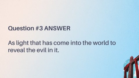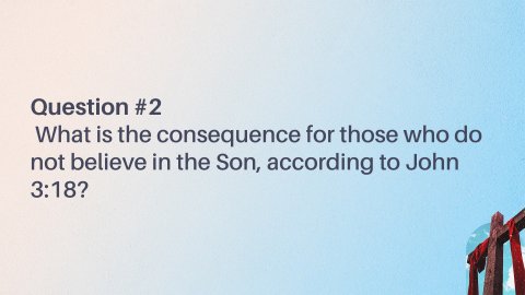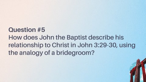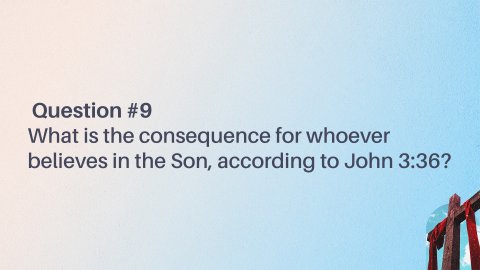 John 3:16–21 ESV “For God so loved the world, that he gave his only Son, that whoever believes in him should not perish but have eternal life. For God did not send his Son into the world to condemn the world, but in order that the world might be saved through him. Whoever believes in him is not condemned, but whoever does not believe is condemned already, because he has not believed in the name of the only Son of God. And this is the judgment: the light has come into the world, and people loved the darkness rather than the light because their works were evil. For everyone who does wicked things hates the light and does not come to the light, lest his works should be exposed. But whoever does what is true comes to the light, so that it may be clearly seen that his works have been carried out in God.”Question #1What was God's primary purpose in sending His Son into the world, as stated in John 3:17?Question #2What is the consequence for those who do not believe in the Son, according to John 3:18?Question #3How does John 3:19 describe the judgment that has come into the world?John 3:22–25 ESV After this Jesus and his disciples went into the Judean countryside, and he remained there with them and was baptizing. John also was baptizing at Aenon near Salim, because water was plentiful there, and people were coming and being baptized (for John had not yet been put in prison). Now a discussion arose between some of John’s disciples and a Jew over purification.John 3:26–30 ESV And they came to John and said to him, “Rabbi, he who was with you across the Jordan, to whom you bore witness—look, he is baptizing, and all are going to him.” John answered, “A person cannot receive even one thing unless it is given him from heaven. You yourselves bear me witness, that I said, ‘I am not the Christ, but I have been sent before him.’ The one who has the bride is the bridegroom. The friend of the bridegroom, who stands and hears him, rejoices greatly at the bridegroom’s voice. Therefore this joy of mine is now complete. He must increase, but I must decrease.”Question #4What is John the Baptist's response when his disciples tell him that Jesus is also baptizing and drawing many people (John 3:26-27)?Question #5How does John the Baptist describe his relationship to Christ in John 3:29-30, using the analogy of a bridegroom?John 3:31–36 ESV He who comes from above is above all. He who is of the earth belongs to the earth and speaks in an earthly way. He who comes from heaven is above all. He bears witness to what he has seen and heard, yet no one receives his testimony. Whoever receives his testimony sets his seal to this, that God is true. For he whom God has sent utters the words of God, for he gives the Spirit without measure. The Father loves the Son and has given all things into his hand. Whoever believes in the Son has eternal life; whoever does not obey the Son shall not see life, but the wrath of God remains on him.Question #6What does John 3:31 say about the one who comes from above?Question #7What is the significance of receiving Jesus' testimony, as mentioned in John 3:33?Question #8How does John 3:34 describe how God gives the Spirit to the one He has sent?Question #9What is the consequence for whoever believes in the Son, according to John 3:36?Question #10What is the consequence for whoever does not obey the Son, according to John 3:36?John 3:16–21LEB
