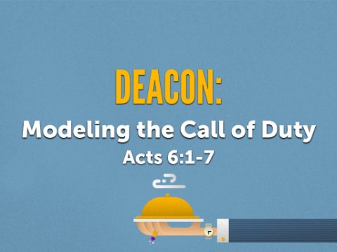 - The Deacon MinistryI find a list from a pastor friend about how you know you are a small rural church pastor.“I got 7 deacons on my mind, 4 that want to own me, 2 that want to stone me, 1 that says he’s a friend of mine.”You have more deacons than you do widowsGladly and thankfully that is not the case here at PRBC.You have more deacons than you do windowsAs you can tell, the topic for this morning is the Deacon Ministry.The NT gives 2 Primary classes of leadership for the church:That of Overseer (Bishop)/ Elder (Presbyter)/ Pastor - these words are all synonymous in the NTThat of DeaconThe NT clearly reveals that the authority for the selection of both of those is vested in/ bestowed upon the entire congregation and to a large extent, the congregation determines the direction and focus of one of them - the deacon ministry. That can be seen beginning with the book of Acts.The text for today comes from the 6th Chapter of this create history of the 1st Century church.The text for today comes from the 6th Chapter of this create history of the 1st Century church.You, as members of this church, will soon have the responsibility of selecting, I believe 4 men, for the duty of serving as a deacon, and you have the responsibility of giving direction to how the deacons can serve our church going forward to help us Rejoice in Jesus, get Rooted in His Word, and Reach the Nations for Him.Next Sunday the sermon is about the man - titled - Deacon: Worthy of the Call to Serve.Next Sunday the sermon is about the man - titled - Deacon: Worthy of the Call to Serve.Today is about the ministry - titled - Deacon: Modeling the Call of Duty.The concept of duty in the New Testament emphasizes service and holiness. Today’s sermon focuses on the service, and next Sunday focuses on the holiness.Jesus says that when a servant has done his best, serving his master, he is only performing his duty ().The seven men we will read about in as chosen by the early church were given the duty of distributing the daily food to the widows (sort of like Meals on Mission), thus meeting a current need but with much deeper implications (). [1]