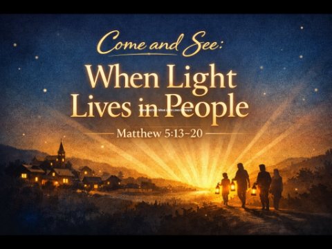 Matthew 5:13–20 NKJV 13 “You are the salt of the earth; but if the salt loses its flavor, how shall it be seasoned? It is then good for nothing but to be thrown out and trampled underfoot by men. 14 “You are the light of the world. A city that is set on a hill cannot be hidden. 15 Nor do they light a lamp and put it under a basket, but on a lampstand, and it gives light to all who are in the house. 16 Let your light so shine before men, that they may see your good works and glorify your Father in heaven. 17 “Do not think that I came to destroy the Law or the Prophets. I did not come to destroy but to fulfill. 18 For assuredly, I say to you, till heaven and earth pass away, one jot or one tittle will by no means pass from the law till all is fulfilled. 19 Whoever therefore breaks one of the least of these commandments, and teaches men so, shall be called least in the kingdom of heaven; but whoever does and teaches them, he shall be called great in the kingdom of heaven. 20 For I say to you, that unless your righteousness exceeds the righteousness of the scribes and Pharisees, you will by no means enter the kingdom of heaven.Come and See: When Light Lives in PeopleThere is something about mountaintop moments that stays with us. They don’t happen often, but when they do, they leave a mark. A breathtaking view. A holy silence. A sense that God is unmistakably near. Scripture is full of those moments—burning bushes, blazing clouds, dazzling light. We tend to assume that’s where revelation belongs: elevated, extraordinary, set apart from everyday life.And Epiphany has given us plenty of those moments. A star piercing the night sky. A voice from heaven at the Jordan. Light dawning in Galilee of the Gentiles. Again and again, we have watched God reveal Himself in ways that interrupt the ordinary and point beyond it. Epiphany is, after all, about seeing—about eyes being opened to who Jesus truly is.But here’s the quiet turn in the story: revelation was never meant to remain at a distance. The light that appears does not stay suspended above the world. It moves closer. It comes down the mountain. It settles into human life.That’s where today’s gospel meets us.By the time we reach Matthew 5, Jesus has already been revealed. He has been baptized, tempted, announced, and followed. He has gone up the mountain—not to escape the world, but to speak into it. And what He says next is startling in its simplicity.He does not tell the disciples to admire the light. He does not instruct them to preserve the moment. He does not warn them to protect the glow from contamination.Instead, He looks at them—ordinary people with ordinary lives—and says, “You are the salt of the earth… You are the light of the world.”Not you will be. Not try to become. Not someday, when you’re ready.You are.That single shift changes everything. Because Jesus is no longer talking about what God does around us—He is talking about what God does through us. Epiphany is no longer just about revelation received; it becomes revelation embodied. The light that once shone before us now takes up residence within us.And that can be unsettling.It would be easier if faith stayed safely private—kept to prayers, worship, and personal conviction. It would be simpler if holiness meant withdrawal rather than engagement. But Jesus does not offer His disciples a faith that hides well. He offers them a faith that shows up.Salt, after all, only works when it touches what needs preserving. Light only fulfills its purpose when it pushes back the dark. Neither exists for itself. Neither draws attention to its own importance. They simply do what they are meant to do—quietly, faithfully, effectively.Jesus is not calling His followers to religious performance. He is calling them to visible presence. Not showy righteousness, but lived goodness. Not spotlight faith, but faithful witness that makes God’s healing more tangible in the world.This is where many people feel the tension. Because public faith has often been confused with loud faith. Visibility with spectacle. Witness with winning arguments. But that is not what Jesus describes here. He speaks of light that guides, not blinds. Of goodness that points beyond itself, not toward applause. Of lives so shaped by grace that others begin to glimpse the heart of God through them.And then Jesus goes even further.He speaks of the Law—not as something to discard or fear, but as something fulfilled. Completed. Brought to life. Righteousness, He says, is no longer about checking boxes or keeping score. It is about alignment with God’s intention—a life transformed from the inside out, where obedience flows from love and holiness takes the shape of mercy.In other words, the light that has been revealed in Christ now seeks a dwelling place. And that dwelling place is not stone tablets or sacred buildings alone—it is people. Ordinary people. People who work, parent, struggle, forgive, fail, and try again. People who carry grace into ordinary places where darkness has learned to settle comfortably.Epiphany light does not stay on the mountain—it takes up residence in ordinary people who carry grace into ordinary places.That is the calling Jesus names today. And it is the invitation before us now.So what does it mean to live as people in whom the light of Christ now dwells—people whose faith becomes visible not for display, but for healing? Jesus begins by naming it plainly: “You are the salt of the earth… You are the light of the world.”Light Given Becomes Light LivedMatthew 5:13–15 “13 “You are the salt of the earth; but if the salt loses its flavor, how shall it be seasoned? It is then good for nothing but to be thrown out and trampled underfoot by men. 14 “You are the light of the world. A city that is set on a hill cannot be hidden. 15 Nor do they light a lamp and put it under a basket, but on a lampstand, and it gives light to all who are in the house