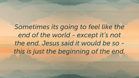 Matthew 24:1–2 ESV 1 Jesus left the temple and was going away, when his disciples came to point out to him the buildings of the temple. 2 But he answered them, “You see all these, do you not? Truly, I say to you, there will not be left here one stone upon another that will not be thrown down.”Most of us have heard this passage before and it may have lost some of it’s shock value.What Jesus says about the destruction of the temple is nothing short of astounding.So much so, that it has caused many scholars to insist that Mathew must have written this gospel (or at least this portion of it) after the events of 70 AD (when the Romans actually destroyed the Jewish temple complex).But scholars who have no trouble believing that Jesus foretold these events prophetically - counter that the most natural reading is that Jesus is in fact foretelling these events.So try to imagine for a moment that you don’t know that the temple will be destroyed?How would you have felt If someone told you before 9/11/2001 that the World Trade Center would be destroyed?Imagine how you would have felt before November 9, 1989 if I told you that the Berlin Wall would come down?Some of you can remember a time before November 22, 1963 - what if someone told you then that the President would be assassinated? Would you have believed them?Now you understand the magnitude of what Jesus is saying.This is mind-blowing stuff.We talked last week about narratives - we all have an idea of how we think the story is supposed to go.This doesn’t fit anyone’s narrative - nobody wants to even think about it.Just mentioning it probably evokes feelings like “its the end of the world!”However, according to Jesus, it’s not...at least not yet.The end is not yet.Matthew 24:3–14 ESV 3 As he sat on the Mount of Olives, the disciples came to him privately, saying, “Tell us, when will these things be, and what will be the sign of your coming and of the end of the age?” 4 And Jesus answered them, “See that no one leads you astray. 5 For many will come in my name, saying, ‘I am the Christ,’ and they will lead many astray. 6 And you will hear of wars and rumors of wars. See that you are not alarmed, for this must take place, but the end is not yet. 7 For nation will rise against nation, and kingdom against kingdom, and there will be famines and earthquakes in various places. 8 All these are but the beginning of the birth pains. 9 “Then they will deliver you up to tribulation and put you to death, and you will be hated by all nations for my name’s sake. 10 And then many will fall away and betray one another and hate one another. 11 And many false prophets will arise and lead many astray. 12 And because lawlessness will be increased, the love of many will grow cold. 13 But the one who endures to the end will be saved. 14 And this gospel of the kingdom will be proclaimed throughout the whole world as a testimony to all nations, and then the end will come.There is a political strategy - and if you are paying attention, you have probably recognized it - whereby leaders intentionally create chaos in oder to manipulate people into submission.First you create a crisis and then you present your solution.And if you do it right, nobody realizes that you were the one who created the crisis in the first place.You frame someone else as the cause of the crisis and claim to be the hero who can fix it.I will let you come up with some recent examples on your own...Jesus told us that this was going to happen.He said there would be chaos.He said that there was going to be international conflict and tension.He said that there was going to be social polarization.And he even predicted that it would divide believers and non-believers.He told his disciples that they would become the object of the worlds scorn.And He even promised that there would be suffering.John 15:18–19 ESV 18 “If the world hates you, know that it has hated me before it hated you. 19 If you were of the world, the world would love you as its own; but because you are not of the world, but I chose you out of the world, therefore the world hates you.Jesus told us ahead of time so that we wouldn’t get caught up in the chaos.We know that much of the world is under the control of our spiritual enemy.We should be surprised when they turn on us.The whole idea is to create confusion so that we give up and give in.Sometimes its going to feel like the end of the world - except it’s not the end.Jesus said it would be so - this is just the beginning of the end.Some people will give up - their love will grow cold.Some people will be fooled my the misdirection and follow the wrong leaders.But the one who hangs in there will make it through - Jesus promises!So what should we do...?Pray to be prepared.Matthew 24:15–22 ESV 15 “So when you see the abomination of desolation spoken of by the prophet Daniel, standing in the holy place (let the reader understand), 16 then let those who are in Judea flee to the mountains. 17 Let the one who is on the housetop not go down to take what is in his house, 18 and let the one who is in the field not turn back to take his cloak. 19 And alas for women who are pregnant and for those who are nursing infants in those days! 20 Pray that your flight may not be in winter or on a Sabbath. 21 For then there will be great tribulation, such as has not been from the beginning of the world until now, no, and never will be. 22 And if those days had not been cut short, no human being would be saved. But for the sake of the elect those days will be cut short.So what is the “abomination of desolation” that is spoken of by Daniel?Daniel 9:27 NLT 27 The ruler will make a treaty with the people for a period of one set of seven, but after half this time, he will put an end to the sacrifices and offerings. And as a climax to all his terrible deeds, he will set up a sacrilegious object that causes desecration, until the fate decreed for this defiler is final