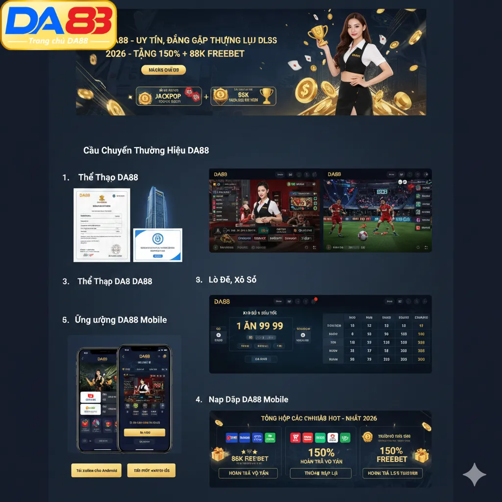 Trang chủ DA88 Chính Thức 2026. Nhà cái Thể Thao, Casino đẳng cấp số 1 Châu Á. Tặng 150% + 88k Free cho Tân Thủ. Nạp rút 1:1 chỉ 3 phút.