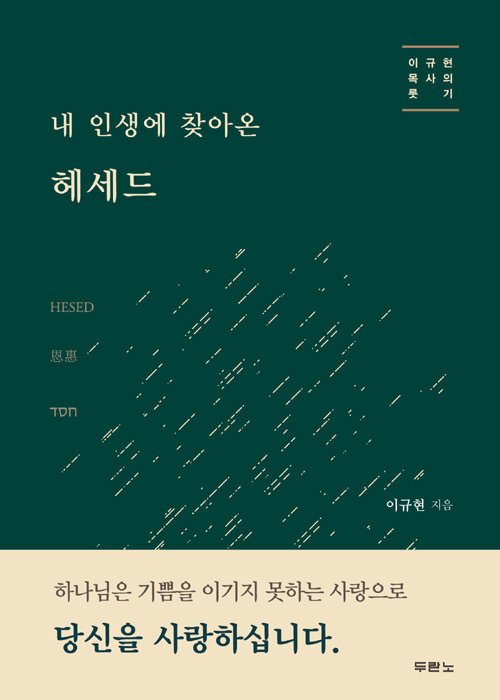 이 책은 룻기를 통해 그리스도인이 많은 고난 중에서도 하나님의 은혜(헤세드)를 깨닫고 하나님께 삶 전체를 의탁할 수 있도록 잔잔하게 메시지를 전한다. 우리의 소망은 전능자 하나님께 있다. 우리가 돌이켜야 할 부분과 순종해야 할 부분이 무엇인가를 발견하고 말씀을 따라 순종하면, 우리 인생 가운데 새로운 일을 행하기를 기다리시는 하나님을 만날 것이다.