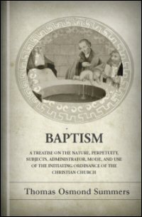 In this unintimidating volume, professor Thomas Osmond Summers presents a comprehensive, yet accessible and restrained, account of the doctrine of baptism. While giving due attention to issues of language and history, Summers competently discusses the subject without burying the reader in Greek etymologies and obscure writers. He covers the nature, proper subjects, administrators, mode, and use of baptism.