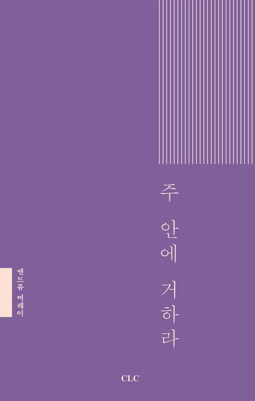 CLC가 새롭게 기획한 “앤드류 머레이 신앙강좌 시리즈”의 일곱 번째 책이다. 이 책은 "내 안에 거하라"는 주님의 명령을 깨닫지 못하는 이들이나, 그것은 능력 밖의 일이라고 두려워하는 이들을 도와주려는 열망에서 쓰여졌다. 반복을 통해 모든 것을 배우는 어린이처럼, 우리는 그 약속이 의미하는 바가 얼마나 진실된 것인지, 그 말씀에 순종하도록 하시는 은혜가 어떤 것인지 한 걸음씩 이해하게 될 것이다.